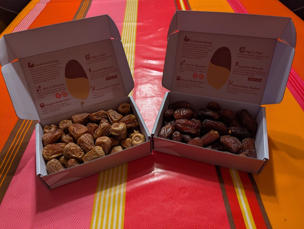 Ordered the sample box and a box of sukkari gaf dates, both were lovely! Can definitely taste the difference between the different types. Make a great snack when on the go and a healthier sweat treat alternative. Delivery was also timely, would recommend :)